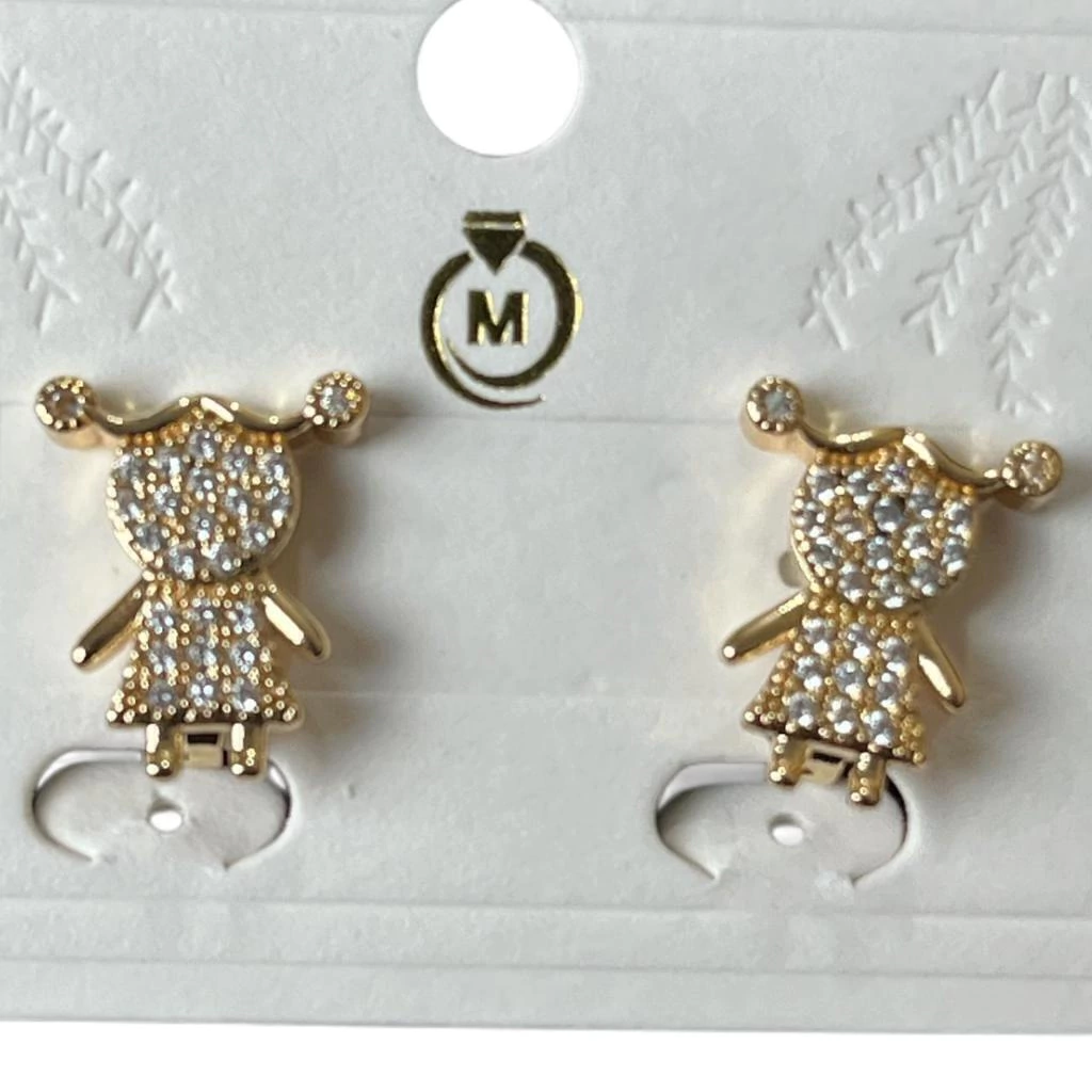 Brinco folheado ouro de pressão menina cravejado zircônia Miri Morena 33231 altura 1,5cm