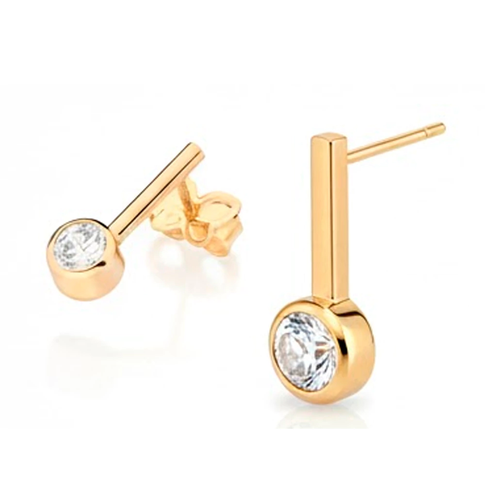 Par brincos folheado ouro 18k Rommanel palito solitário com zircônia 527335 medidas altura 1,4cm x 0,5cm largura