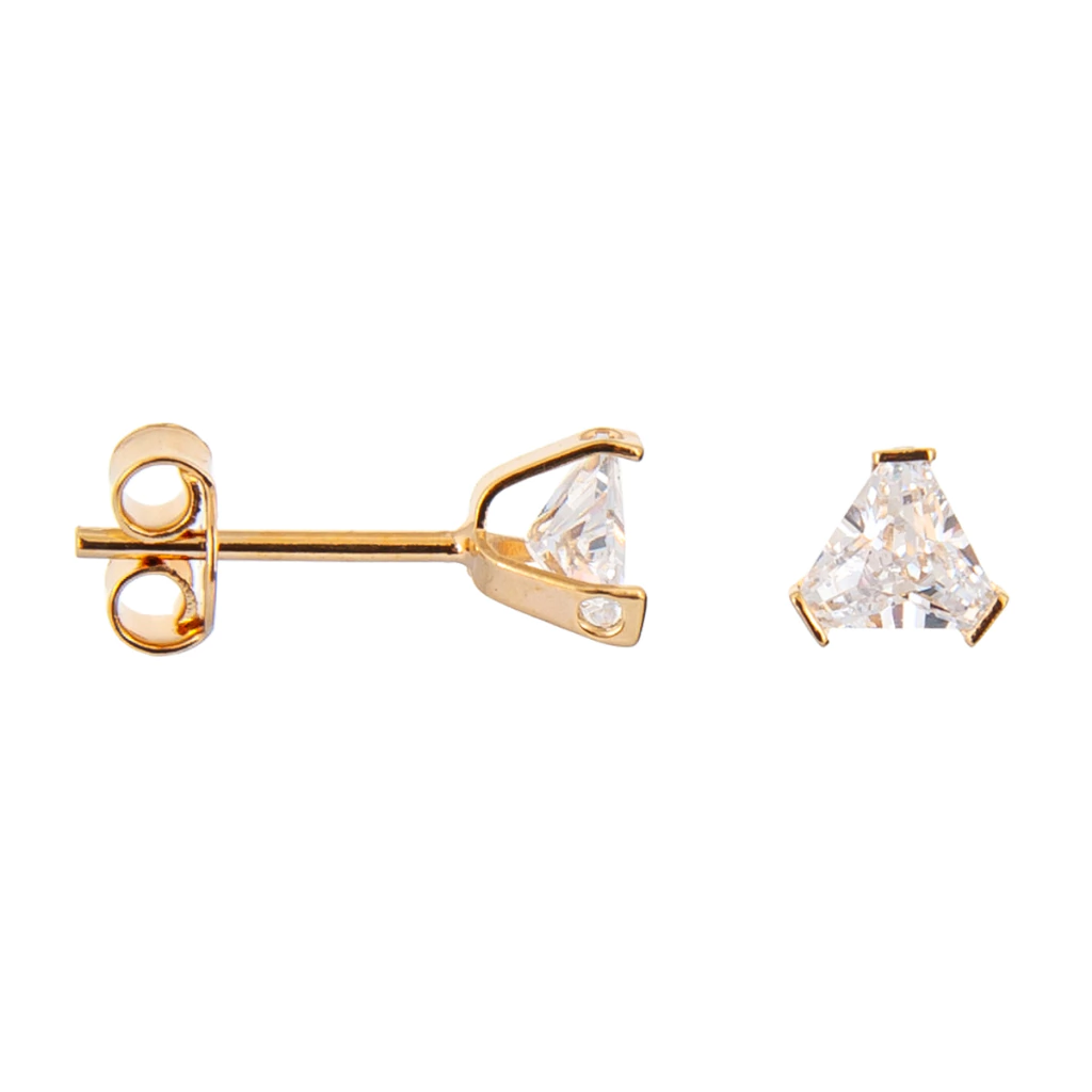 Feitos de material folheado a ouro 18k, esses brincos oferecem durabilidade e beleza. Seu design em forma de triângulo traz um ar moderno e estiloso, atendendo ao público que preza por um estilo casual, mas com um toque de glamour. Cada par consiste em duas peças, garantindo que você sempre tenha um acessório à mão que complemente seu visual.